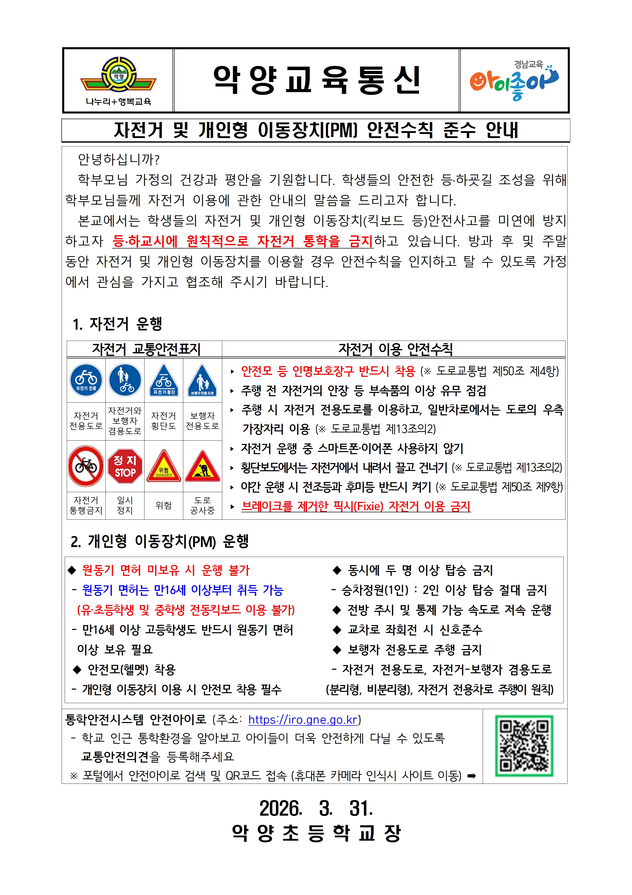 자전거 및 개인형 이동장치(PM) 안전수칙 준수 안내
