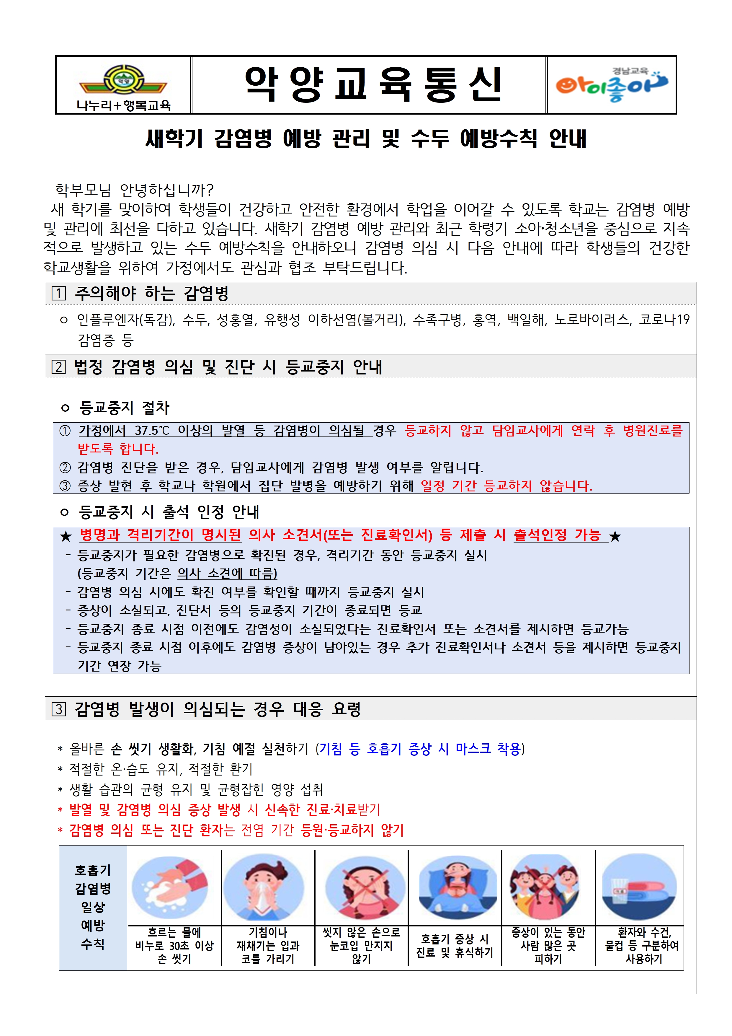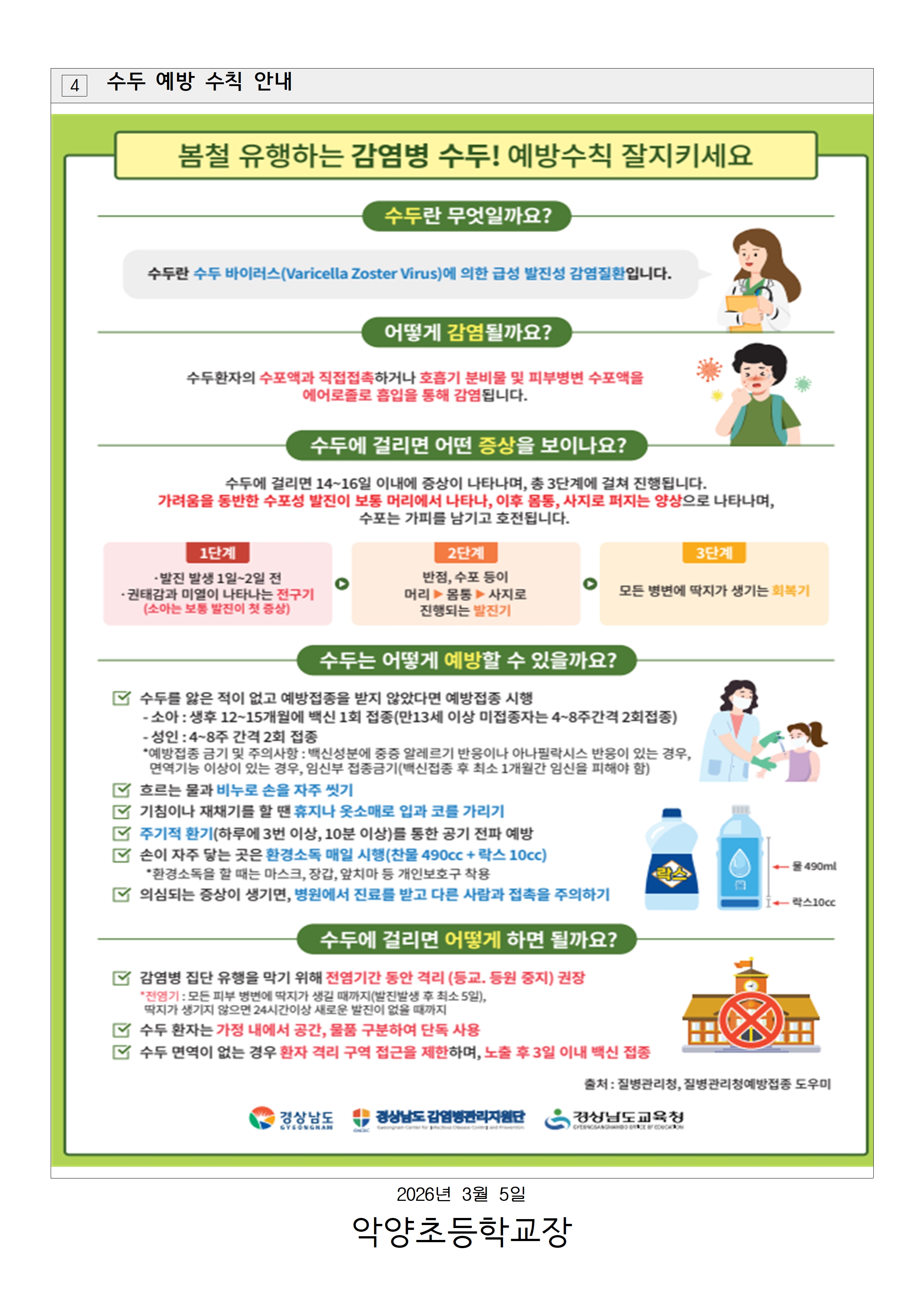 새학기 감염병 예방 관리 및 수두 예방수칙 안내