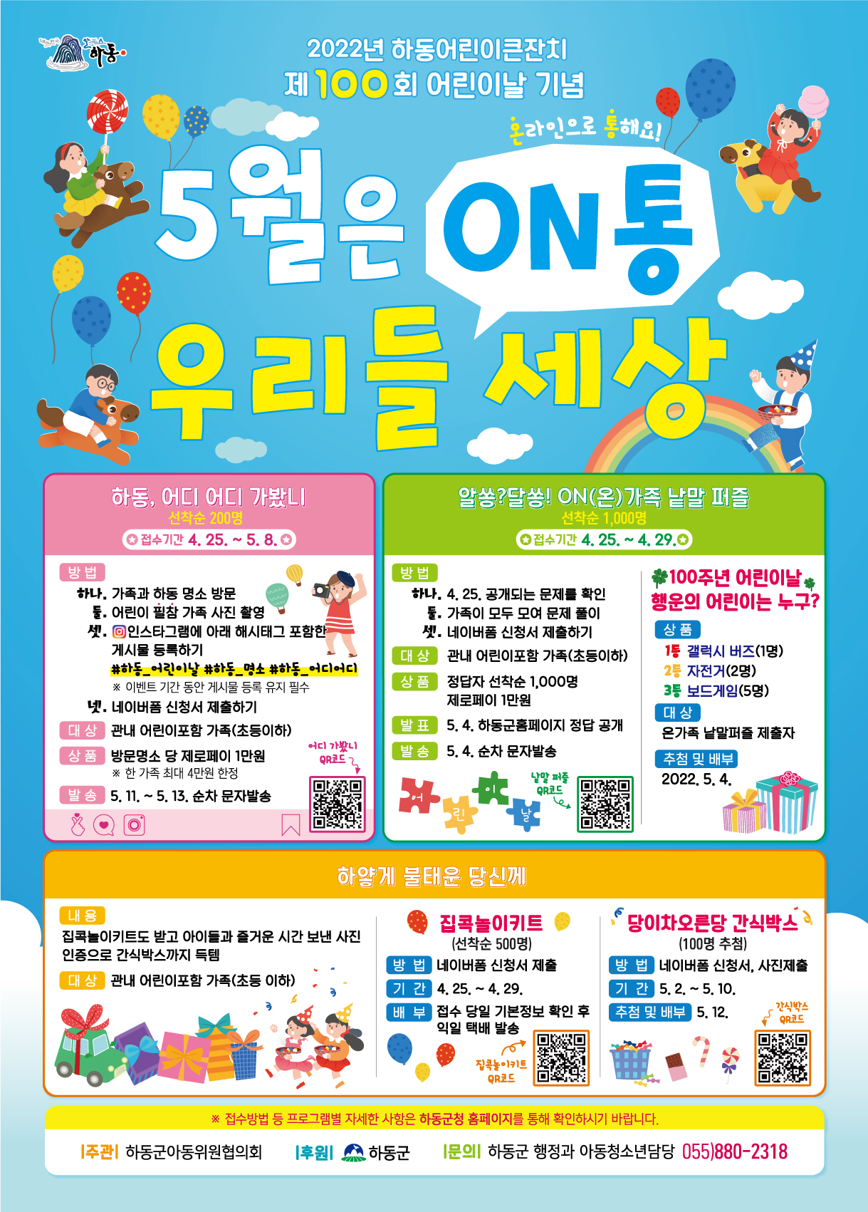 2022년 하동어린이큰잔치 제100회 어린이날 기념 행사 안내